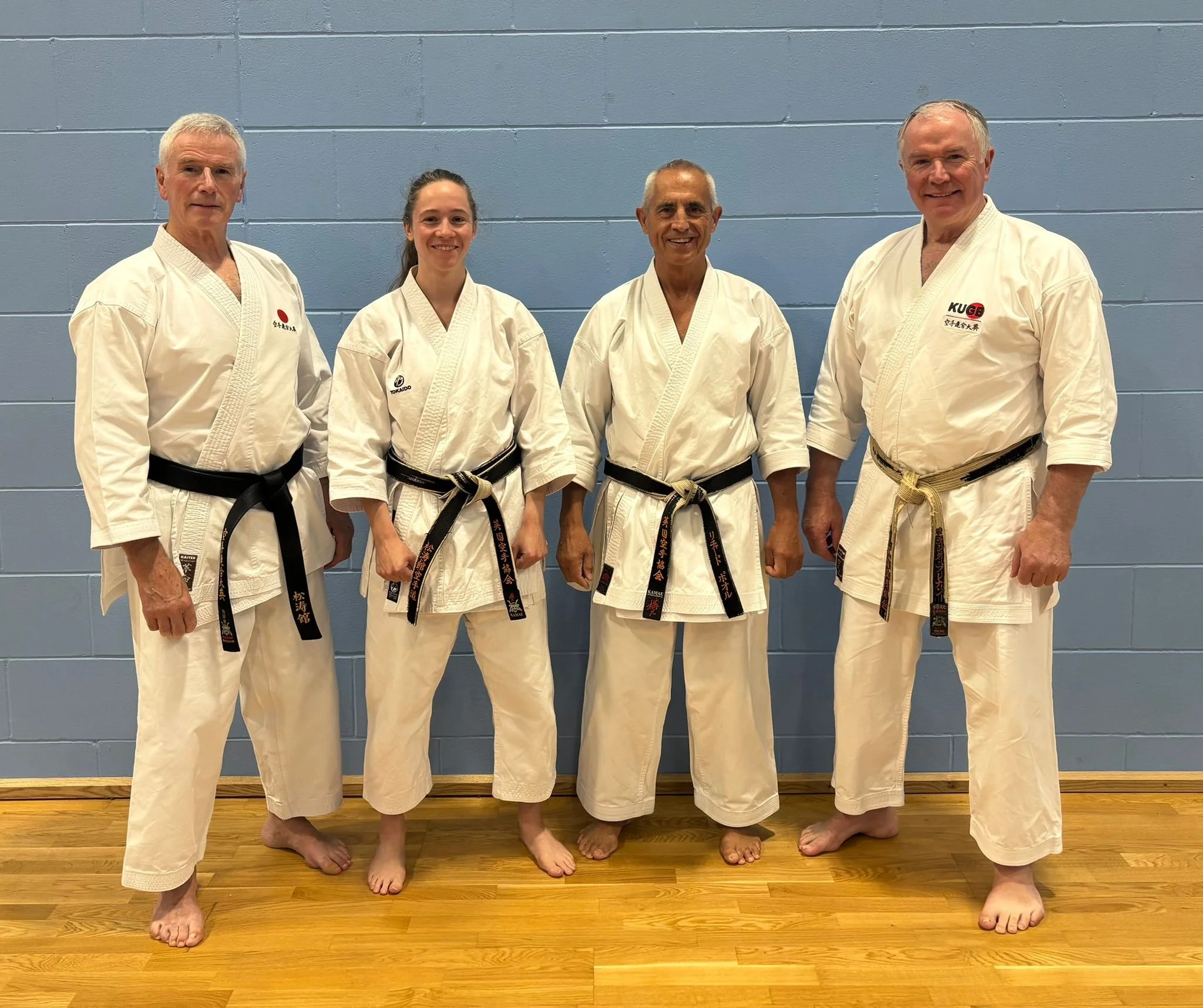This week Senseis Richard & Tegwen are in Lancaster at the KUGB’s Summer Course. There are over 100 training with experience ranging from white belt to 7th dan. The course has been running since 1989 and is taught by senior KUGB instructors, including Senseis Jimmy and Frank Brennan, pictured here with Tegwen and Richard.